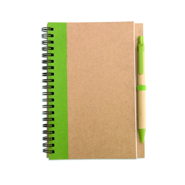 Znasz ten moment, gdy po prelekcji podchodzisz do stoiska i dostajesz upominek „na wynos”? Jeśli w ręce wpada właśnie Sonora plus, Twoje logo nie kończy w torbie z ulotkami. Podwójna spirala pozwala rozłożyć notatnik na płasko, więc odbiorca od razu zaczyna pisać lub szkicować. Oko przyciąga bordowy pasek okładki, kontrastujący z naturalnym brązem papieru. Długopis z kartonu z recyklingu i biodegradowalnego plastiku idealnie komponuje się z całością, a niebieski wkład jest czytelny na każdej stronie. Około 70 kartek to akurat tyle, by towarzyszyć przez 2–3 miesiące spotkań i burz mózgów – wystarczająco długo, by nazwa Twojej firmy wryła się w pamięć.