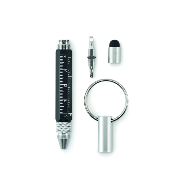 Minimalistyczny z wyglądu, a skrywający aż pięć funkcji – wielofunkcyjny brelok z przekręcanym długopisem zamienia się w poręczne narzędzie, które zawsze masz pod ręką. Już pierwszy kontakt z chłodnym, matowym aluminium zdradza, że ten aluminiowy brelok wielofunkcyjny powstał, by służyć latami i eksponować Twoje logo w eleganckim stylu. Wbudowana linijka 4 cm, śrubokręt 2 w 1 oraz rysik do ekranów dotykowych sprawiają, że na targach lub w paczce powitalnej zachwycisz praktycznością. Dołącz go do kluczy klienta, a Twoja marka będzie towarzyszyć mu każdego dnia bez nachalnej reklamy.