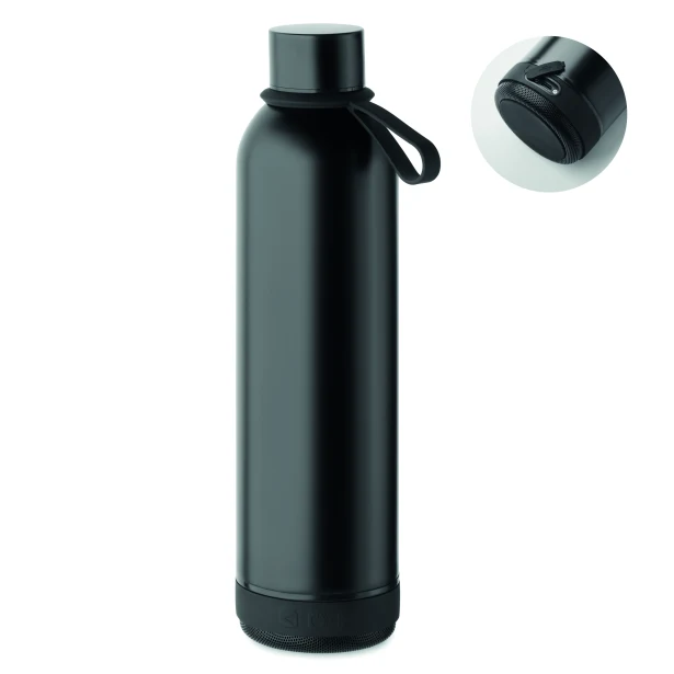 Czarna butelka termiczna 500 ml z głośnikiem bluetooth