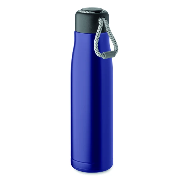 Zakrętka z tworzywa PP tworzy hermetyczne zamknięcie. Możesz wrzucić butelkę do torby laptopowej lub firmowego plecaka bez ryzyka zalania dokumentów. Wbudowany sznurkowy uchwyt sprawia, że przenoszenie jest wygodne nawet na imprezach integracyjnych, gdzie jedna ręka zajęta jest networkingiem.