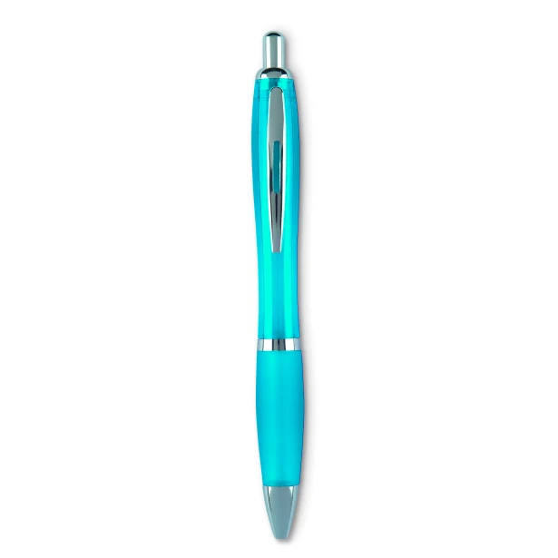 Każde naciśnięcie srebrnego przycisku wysuwa niebieski wkład – standardowy, lubiany przez około 9 na 10 osób w biurach i na uczelniach. Miękki, gumowany uchwyt zwiększa komfort podczas wielogodzinnych notatek, dlatego odbiorca rzadko rozstaje się z Rio. A im częściej używa długopisu, tym więcej spojrzeń trafia na Twoje logo. Taki personalizowany pisak pracuje na świadomość marki dyskretnie, ale skutecznie, bo blisko dłoni i kartki – dokładnie tam, gdzie zapadają decyzje.
