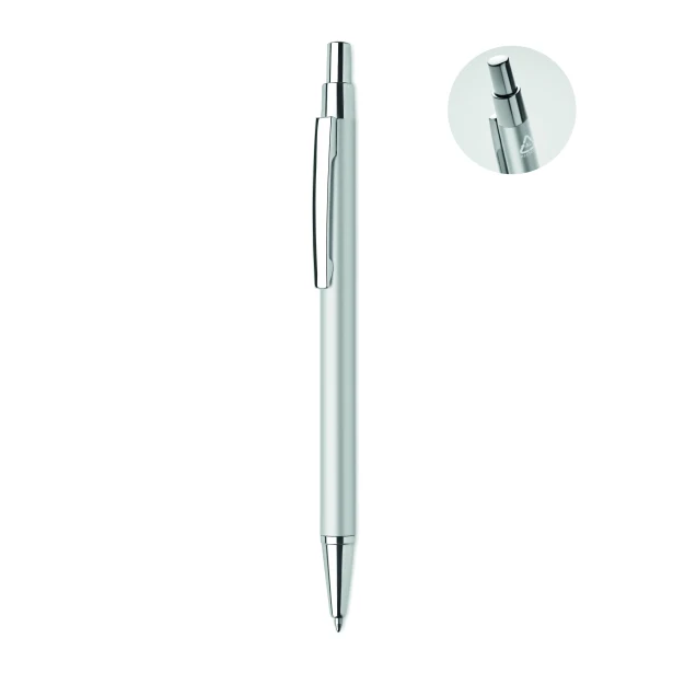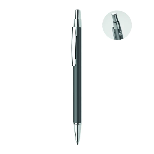 Smukły korpus z recyklingowanego aluminium, elegancka czerń i srebrne akcenty, a do tego wyrazisty grawer – wszystko to sprawia, że metalowe długopisy reklamowe Dana w jednej chwili budują obraz marki, która dba o jakość i planetę. Ten aluminiowy długopis z logo leży w dłoni lekko jak piórko, pisze gładko niebieskim tuszem i błyszczy subtelnym oznaczeniem recyklingu na przycisku. Idealny, by podarować go kluczowym klientom i za każdym razem przypominać o współpracy, gdy tylko sięgną po notatnik.