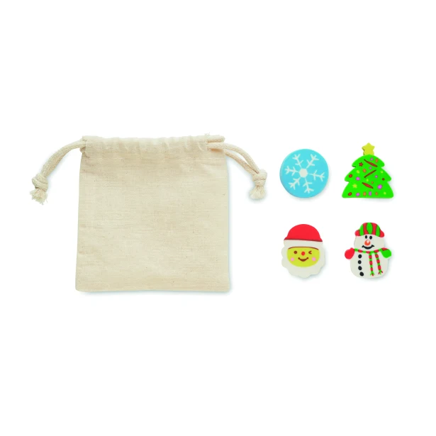 Gadżety reklamowe świąteczne potrafią w jednej chwili zapalić w biurze iskrę świątecznego nastroju i pokazać, że firma dba o detale. Ten niepozorny, lecz pełen uroku zestaw gumek do zmazywania w beżowym woreczku z bawełny przykuwa wzrok już od pierwszego spojrzenia i błyskawicznie wywołuje uśmiech. Ozdobne kształty – od choinki po bałwana – to drobny, ale wymowny gest dla zespołu, który codziennie wspiera sukces Twojej marki. Zaskocz współpracowników upominkiem, który łączy funkcję biurową z bożonarodzeniową magią i sprawia, że nawet poprawianie notatek staje się przyjemnością.