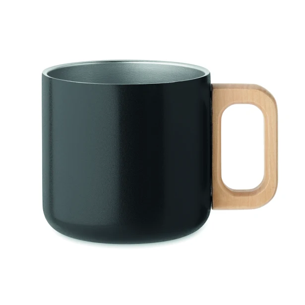 Czarny kubek metalowy 350 ml z drewnianym uchwytem z logo