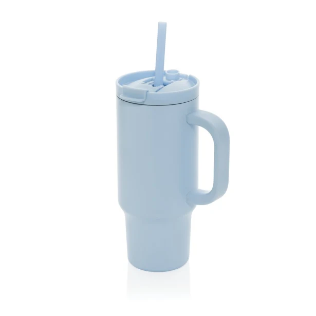 Niebieski kubek termiczny 480 ml ze słomką i uchwytem z recyklingu z logo
