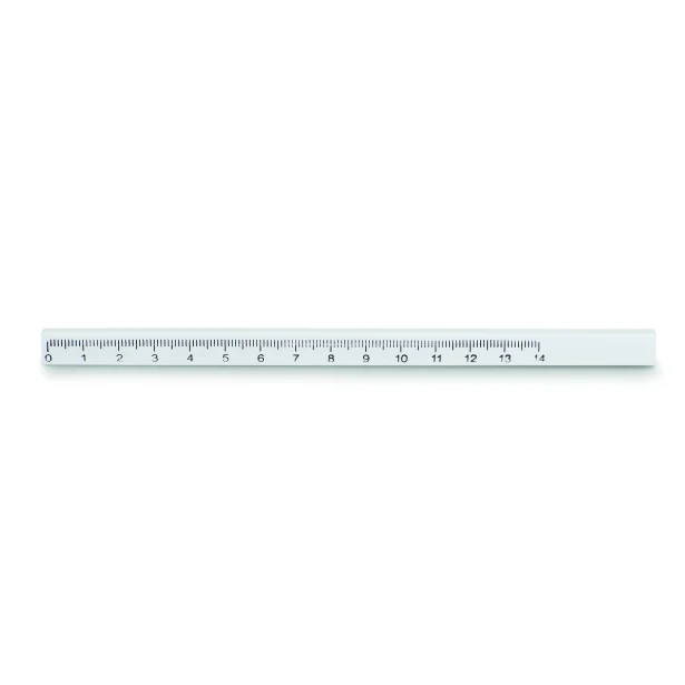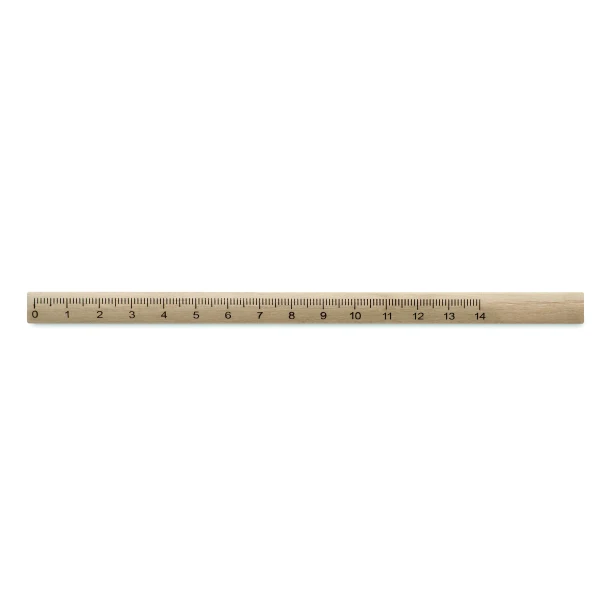 Model Maderos to klasyczny, płaski drewniany pisak ciesielski o długości 17,5 cm i grubości niespełna centymetra. Naturalne drewno gwarantuje przyjemny chwyt, a gładko wyszlifowana powierzchnia tworzy idealną bazę pod branding. Wbudowana podziałka 14 cm pozwala szybko odmierzyć odległość bez sięgania po miarkę – w prawie 8 przypadkach na 10 użytkownik korzysta z niej „na oko”, ale tu ma pewność co do precyzji. Korpus w kolorze białym sprawia, że barwny nadruk kontrastuje i jest czytelny nawet z kilku kroków.