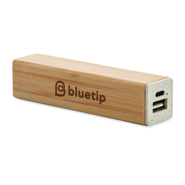 Naturalny bambus, subtelne słoje i przyjemnie zaokrąglone krawędzie tworzą jednolitą, ciepłą bryłę. Kontrastująca końcówka o fakturze kamienia nadaje całości industrialny twist, dzięki czemu gadżet świetnie prezentuje się zarówno w dłoniach handlowca, jak i project managera z branży IT. Powierzchnia z drewna stanowi idealne tło dla przenośnego banku energii z charakterem – każdy dotyk przypomina o ekologicznych korzeniach produktu. Bambus pochłania mniej CO₂ podczas wzrostu niż aluminium podczas produkcji, więc wybierając ten model stawiasz na realnie zmniejszony ślad węglowy.