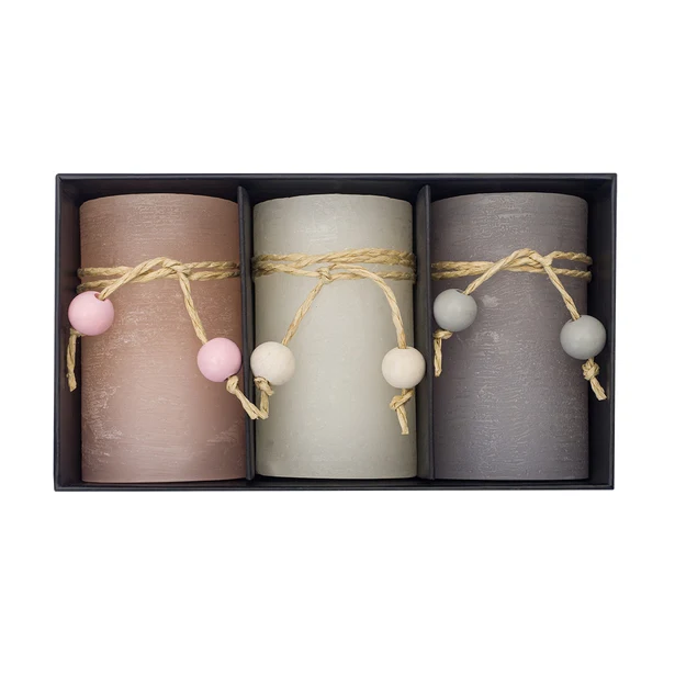 Świece reklamowe z logo potrafią rozpalić wyobraźnię kontrahenta szybciej niż najdłuższa prezentacja w PowerPoincie. W eleganckim pudełku czeka na niego zestaw trzech świec zapachowych – różowa, kremowa i szara – czyli personalizowane świece parafinowe, które pachną wanilią, tulipanem i różą z nutą pieprzu. Całość oplata jutowy sznurek z drewnianymi kulkami, podkreślając rzemieślniczy charakter i gotowość do wyraźnego brandingu już na wieczku pudełka. To drobny gest, który wprowadza atmosferę relaksu na burzliwym spotkaniu i zostawia Twój znak w pamięci na co najmniej 16 godzin palenia – a w biznesie to niemal wieczność.