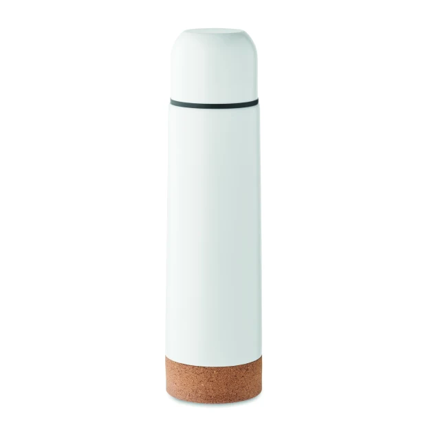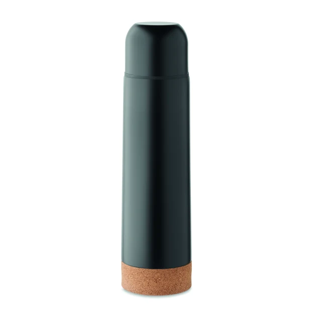 czarny termos 500 ml z recyklingowanej stali z korkową podstawą i grawerowanym logo